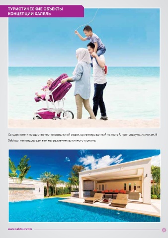 ТУРИСТИЧЕСКИЕ ОБЪЕКТЫ КОНЦЕПЦИИ ХАЛЯЛЬ Сегодня отели предоставляют специальный отдых, ориентированный на гостей, проповедующих ислам. В Sabtour мы предлагаем вам направление халяльного туризма. www.sabtour.com